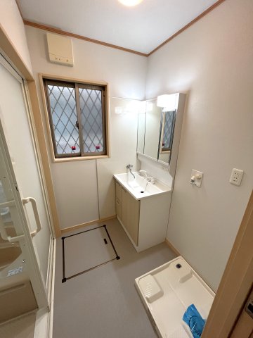 24時間換気付き洗面所。格子窓付きで防犯対策あり。