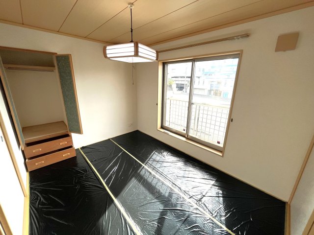 E.2階洋室約8.0帖(現状和室、11月下旬変更工事完了予定)押入れと洋服タンス、小窓からの採光あり(2面採光) 南西側角のお部屋