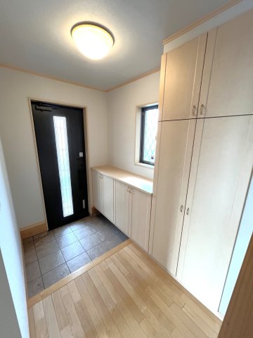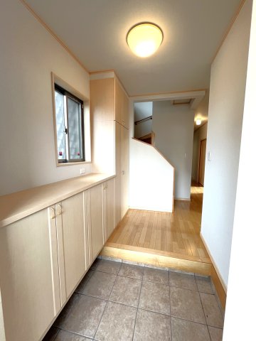 窓付きで採光の取れる広々とした玄関