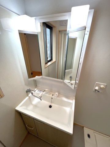 三面鏡、シャワー付き水栓の洗面化粧台(2025年10月交換済)