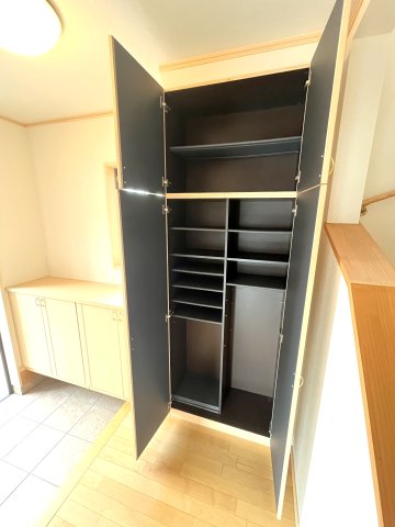 傘など長物も収納できます。トール型シューズボックス内