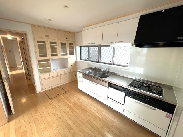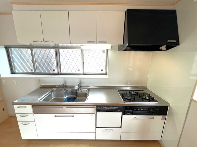 食器洗浄乾燥機付きキッチン。ガスコンロはお手入れしやすいガラストップ式。