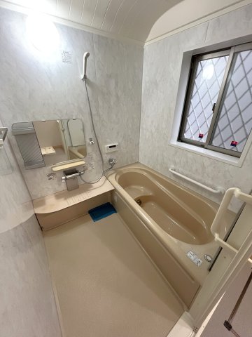 1坪以上サイズの浴室につき、ゆったりと入れます。格子窓付きで防犯対策あり