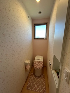 2階トイレ 収納スペースも多く、タンクレス仕様のトイレです。窓もついているため、通風・採光も良好です。