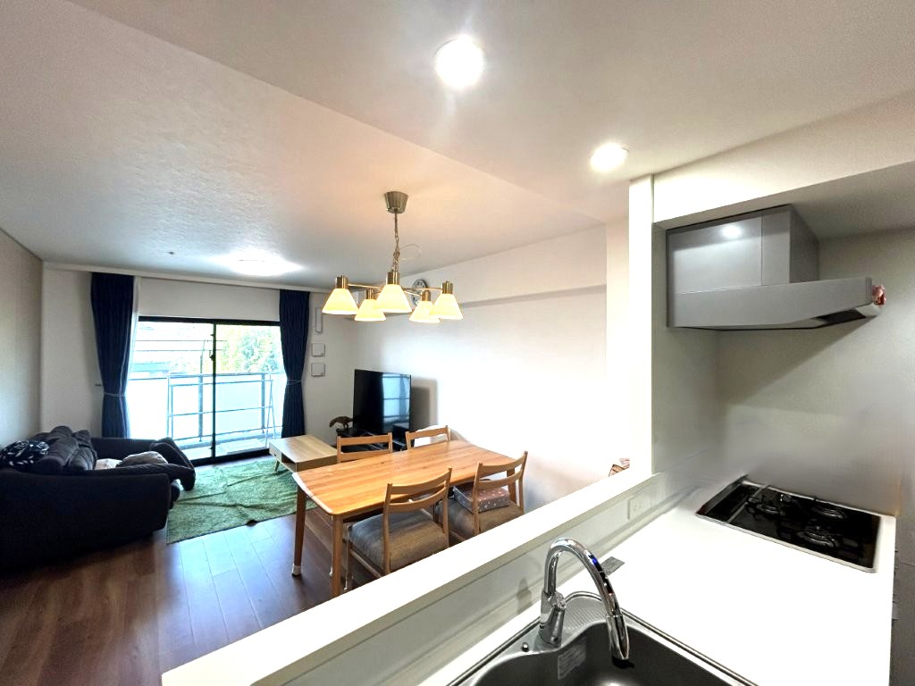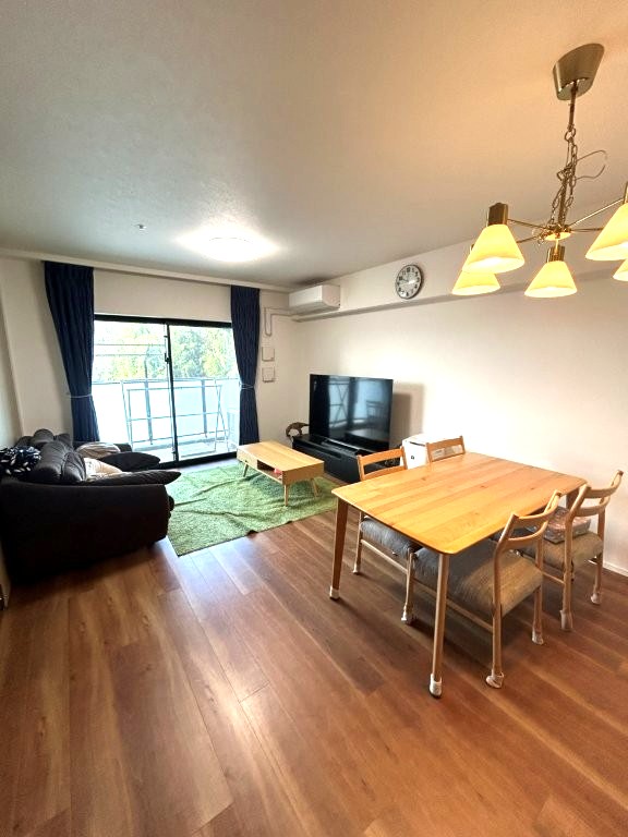 南西向き7階部分、陽当たり・眺望ともに良好。家具配置のしやすい縦長形状のLDです。