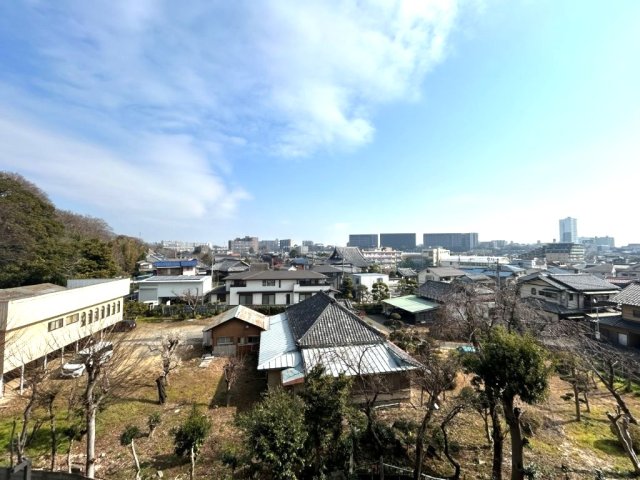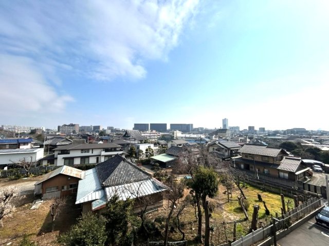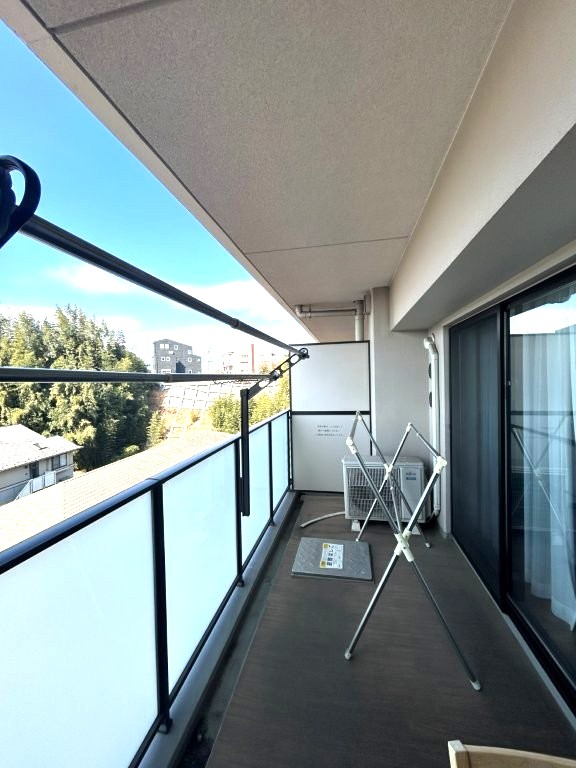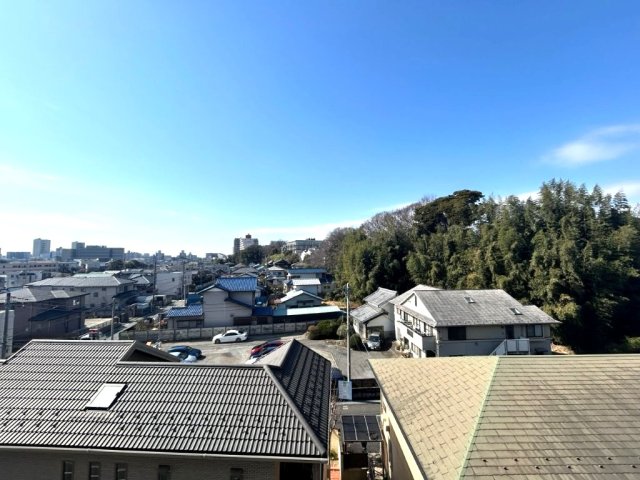 バルコニーからの眺望。前面建物がないため、陽当たり・通風良好です。
