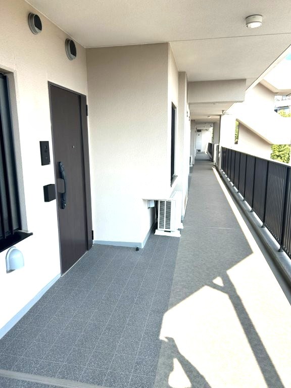 廊下側の眺望。バルコニー側だけでなく、廊下側にも前面建物がないため、風通しも良好です。