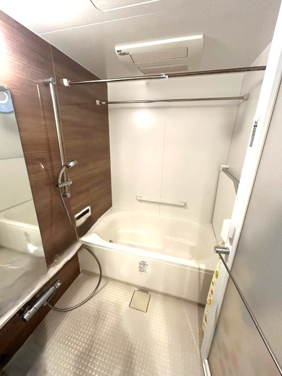 ダブル保温機能で湯音キープしてくれる保温浴槽。床は水はけの良い素材と形状のため、水たまりを防いで、カビの発生や汚れの付着を防いでくれます。